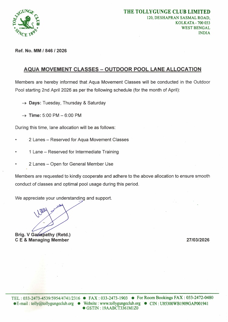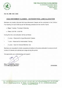 - Aqua Movement Classes – Outdoor Pool Lane Allocation